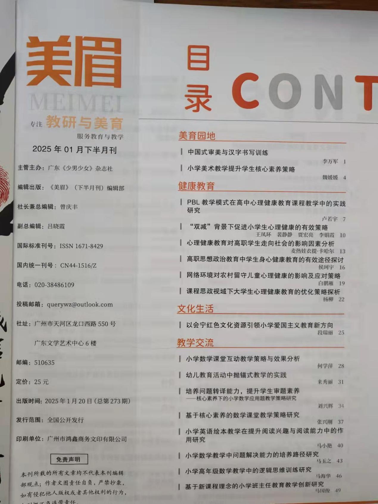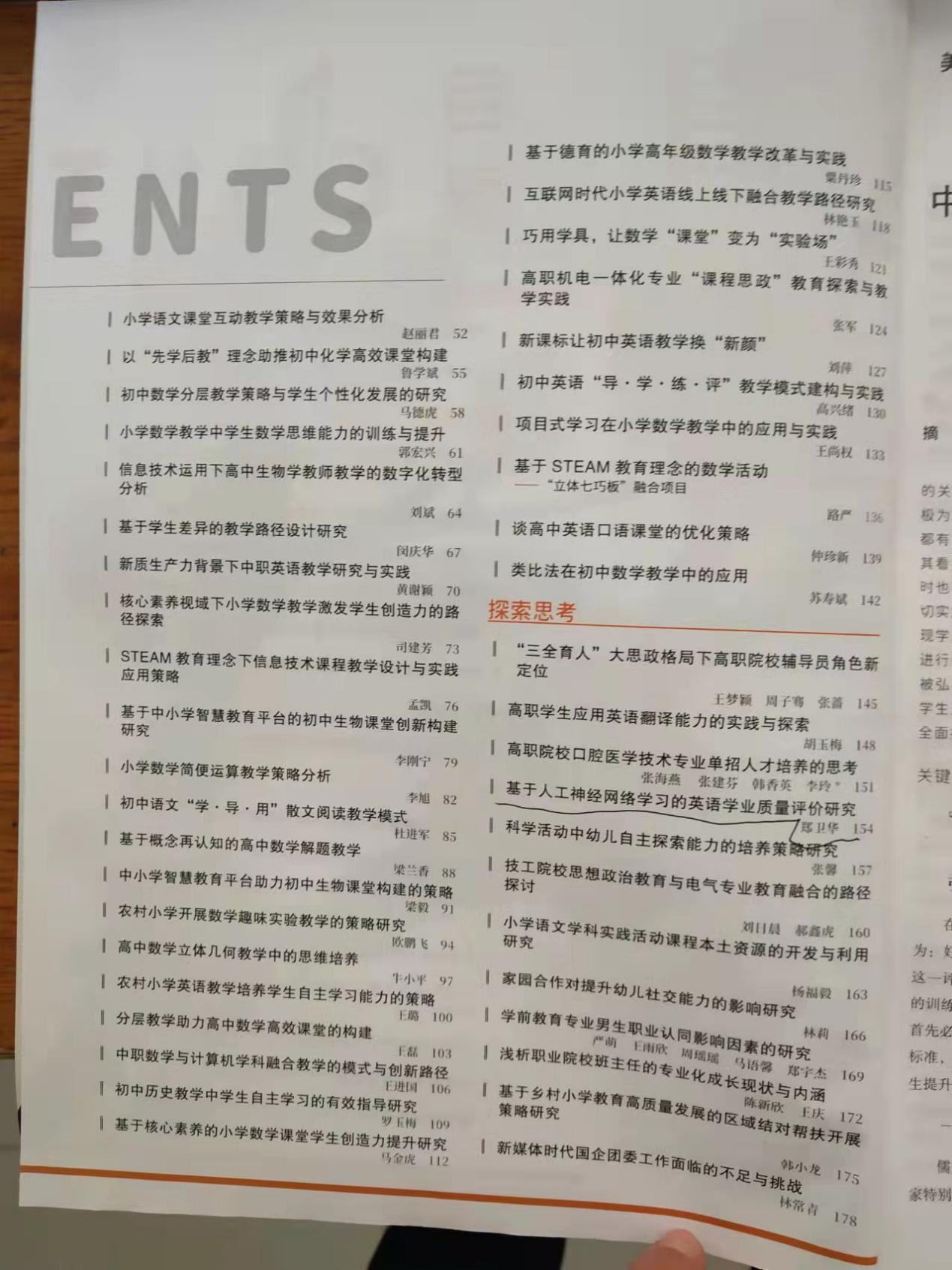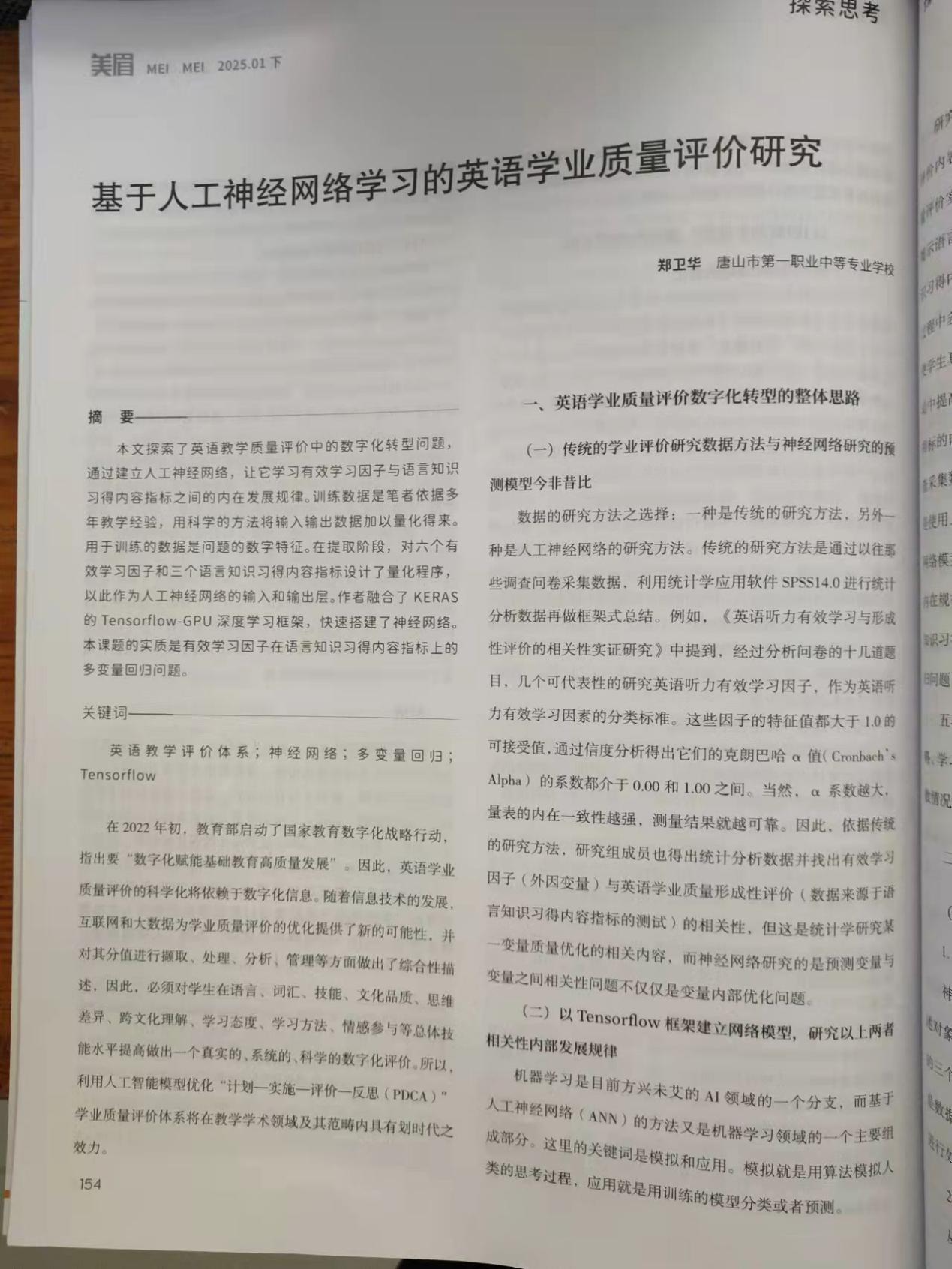论文《基于人工神经网络学习的英语学业质量评价研究》发表于《教研与美育》期刊杂志社